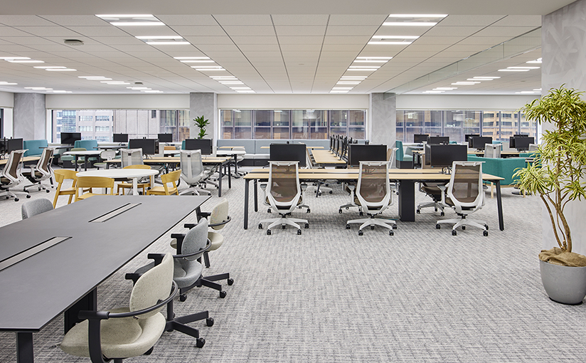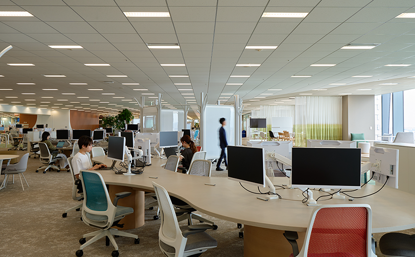グループアドレスとフリーアドレスを掛け合わせたハイブリッド運用※を導入。コミュニケーションと集中の両立を目指し、段階的なオフィス改革を実現しました。
